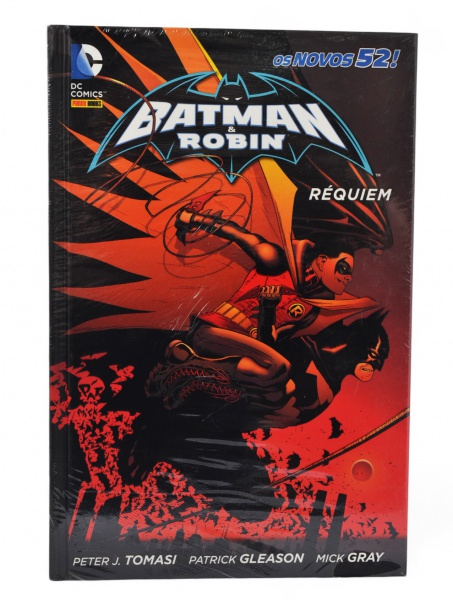 • DC - BATMAN & ROBIN - "Réquiem". Autores: Peter J. Tomasi, Patrick Gleason e Mick Gray. Série Os Novos 52!. Editora Panini Books, com 180 páginas. Capa dura. Dimensões: 17,5 x 26,5 cm. *** Atenção: Exemplar em perfeito estado de conservação, nunca manuseado, lacrado no plástico original da editora, o que nos impossibilitou de fotografar as páginas internas.