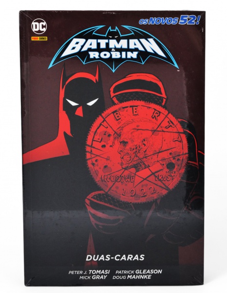 • DC - BATMAN & ROBIN - "Duas Caras". Autores: Peter J. Tomasi, Patrick Gleason, Mick Gray e Doug Mahnke. Série Os Novos 52!. Editora Panini Comics, com 148 páginas. Capa dura. Dimensões: 17,5 x 26,5 cm. *** Atenção: Exemplar em perfeito estado de conservação, nunca manuseado, lacrado no plástico original da editora, o que nos impossibilitou de fotografar as páginas internas.