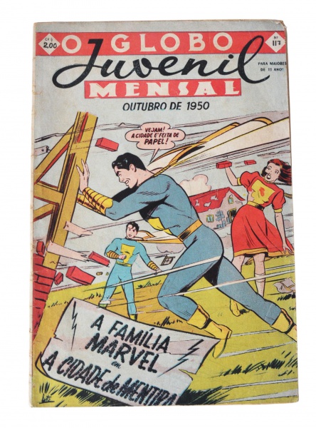 • Revista em Quadrinhos - HQ: "O GLOBO JUVENIL MENSAL" - nº 117, datada de outubro de 1950. Capa: A Família Marvel em A Cidade de Mentira. Rara revista, com quadrinhos da Família Marvel, Iris o Invencível, Mary Marvel, etc.. Bem conservada.