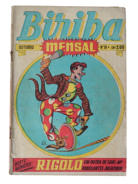 • Revista em Quadrinhos - HQ: "Biriba Mensal" - nº 11, datada de outubro de 1950. Capa: "Rigolô em outra de suas mirabolantes aventuras". Rara revista, com quadrinhos de Rigolô, Rocky lane, Capitão Kid, etc...