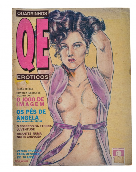 • Quadrinhos Eróticos: "QE", s/n, ano 1987, Editora Big Bun, sem paginação. Títulos de capa: "O jogo de imagem", "Os pés de Angela" (por Sebastião Zéfiro), e outros. Ruptura parcial na dobra da capa (lombada).