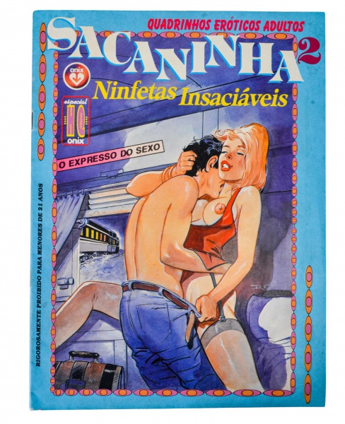 • Quadrinhos Eróticos: "Sacaninha - Ninfetas Insaciáveis", nº 2 - Especial HQ Onix, ano 1989, Editora Onix, com 32 páginas. Título de capa: "O Expresso do Sexo".