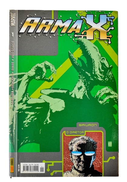 • EDIÇÃO Nº 1 - MARVEL - ARMA X, nº 1, datada de outubro de 2003, Panini Comics Editora, com 50 páginas. Títulos de capa: "Sauron" e "O Diretor".