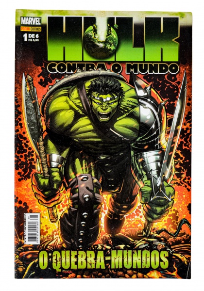 • EDIÇÃO Nº 1 - MARVEL - HULK: "Hulk Contra O Mundo - Minissérie", nº 1, datada de maio de 2008, Panini Comics Editora, com 52 páginas. Título de capa: "O Quebra-Mundos".