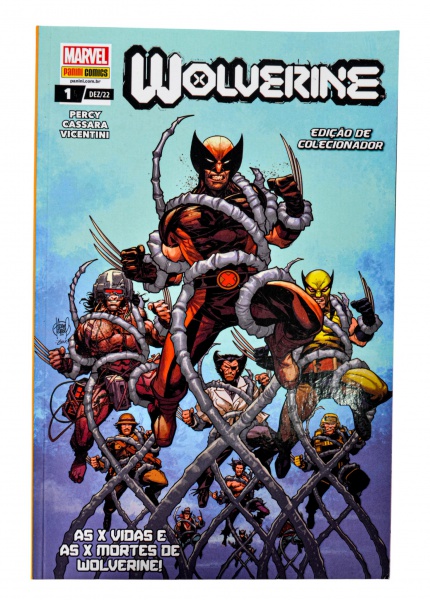 • EDIÇÃO Nº 1 - WOLVERINE, nº 1, datada de dezembro de 2022, Panini Comics Editora, com 107 páginas. Título de capa: "As X Vidas e As X Mortes de Wolverine!" Edição de colecionador.