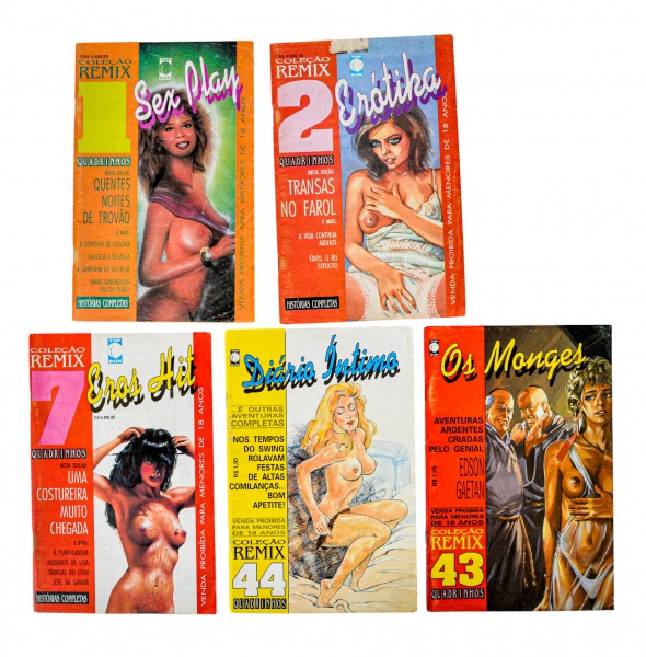• Quadrinhos Eróticos (05): "Coleção REMIX", nºs 1, 2, 7, 43 e 44, ano 1992 as três primeiras e 1994 as duas últimas, NSD Editora / Top Bun, com 60 páginas cada. Títulos de capa: "Diário Íntimo", "Sex Play ", "Erótica", "Eros Hit" e "Os Monges", além de muitas outras histórias completas