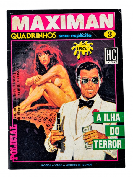 • Quadrinhos Eróticos: "Maximan - Sexo Explícito", nº 3, s/d, Editora HC Comix, com 66 páginas. Policial: Devasso, Violento, Imoral. Título de capa: "A Ilha do Terror".